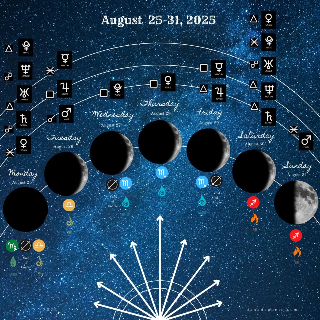 In this post, I share a summary of the moon for the week of August 25-31, 2025 as it moves through the zodiac and interacts with the planets. I also share three watercolor art rituals for self-care to help you move through the transitional change of the full moon lunar eclipse in Pisces.
