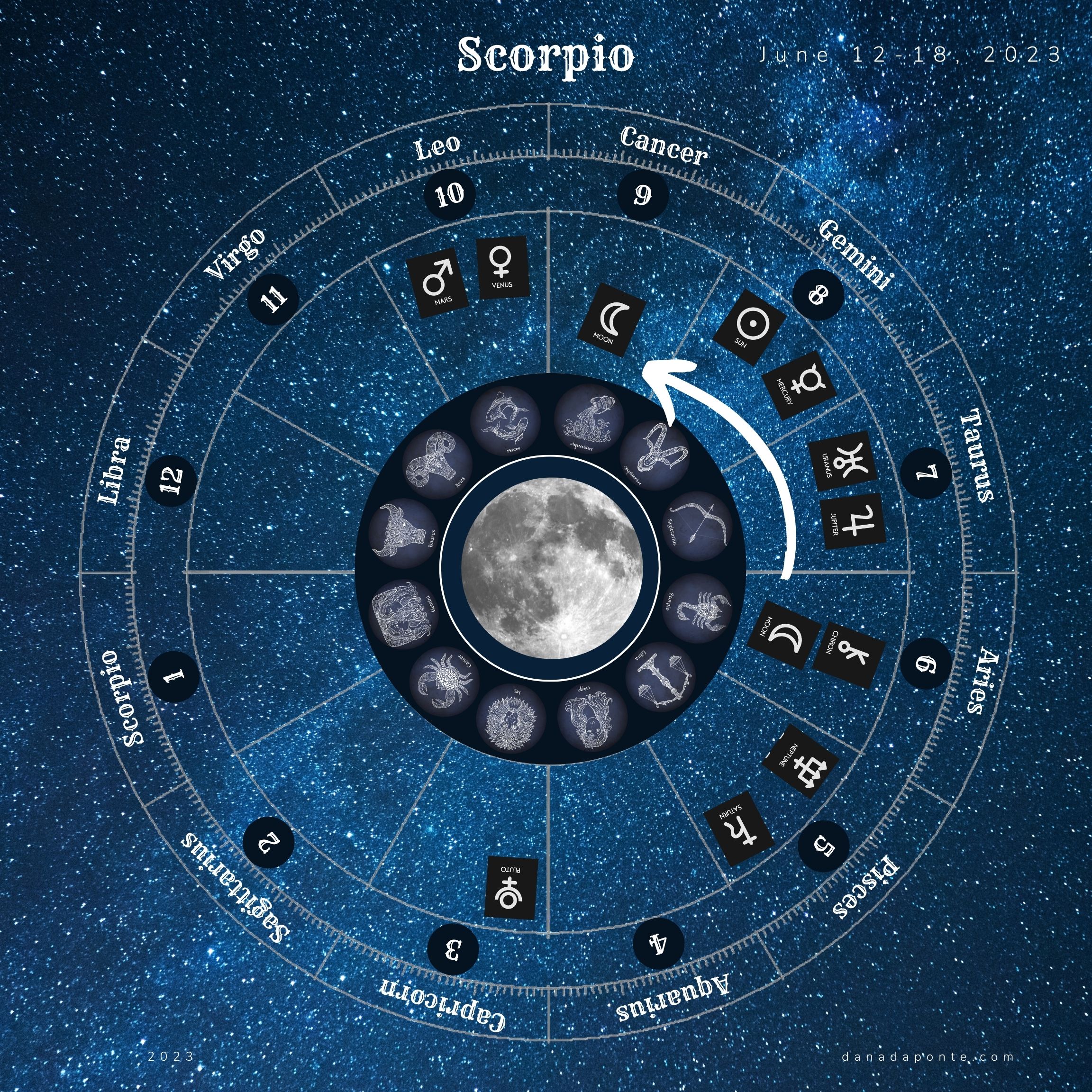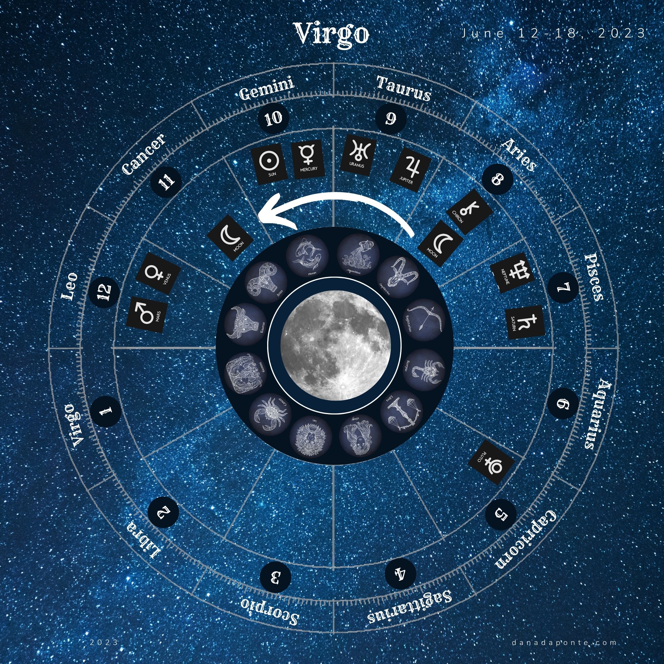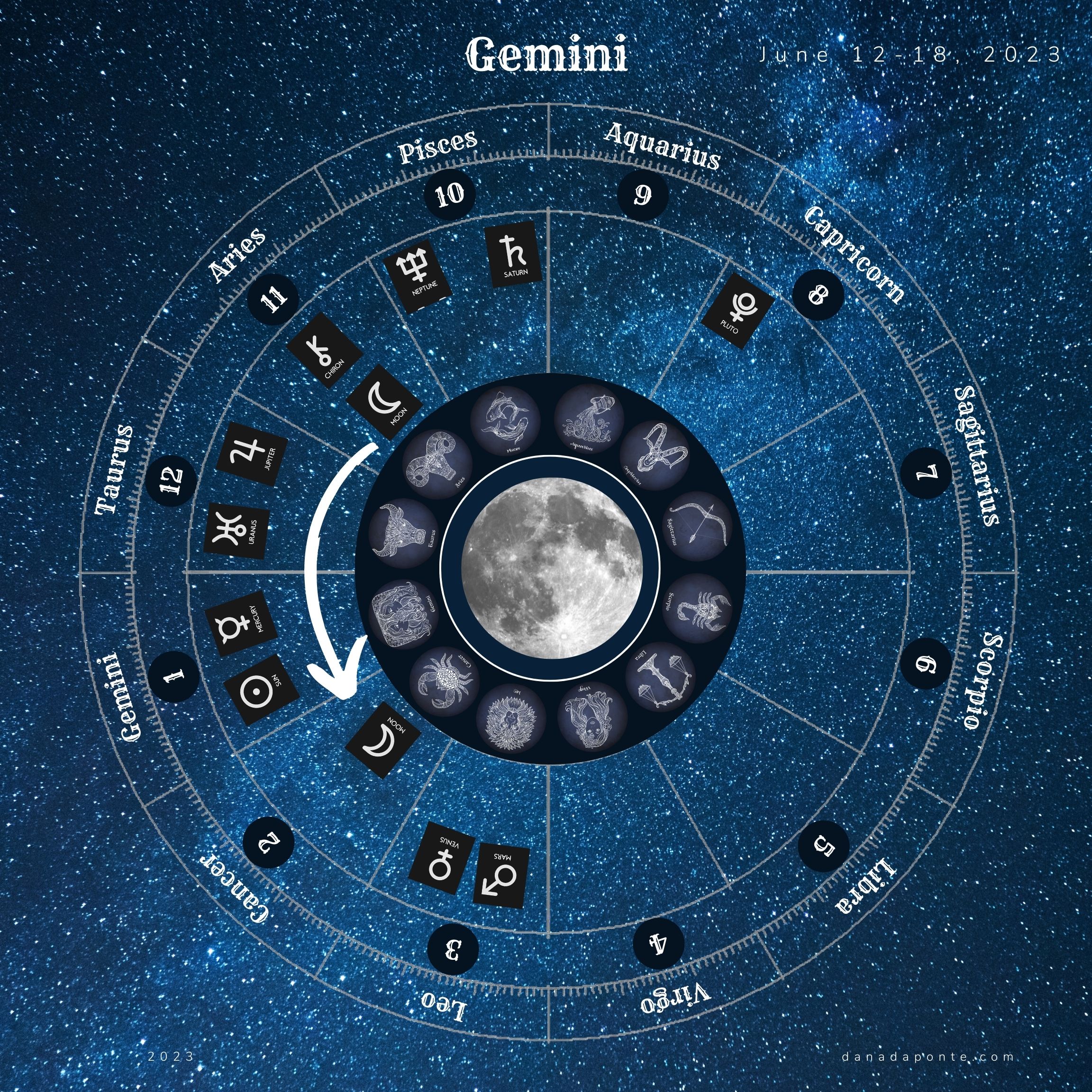 If you want to understand the areas of your life this energy will affect you most, scroll down to the images that show you the moon this week according to your rising sign. Find the image with your rising sign in the title then look at the zodiac wheel and find the pie shaped part of the chart that is titled “Gemini”. Next, look at the number below the word “Gemini”. That number represents the astrological house that Gemini takes care of on your birth chart. What house number do you see?