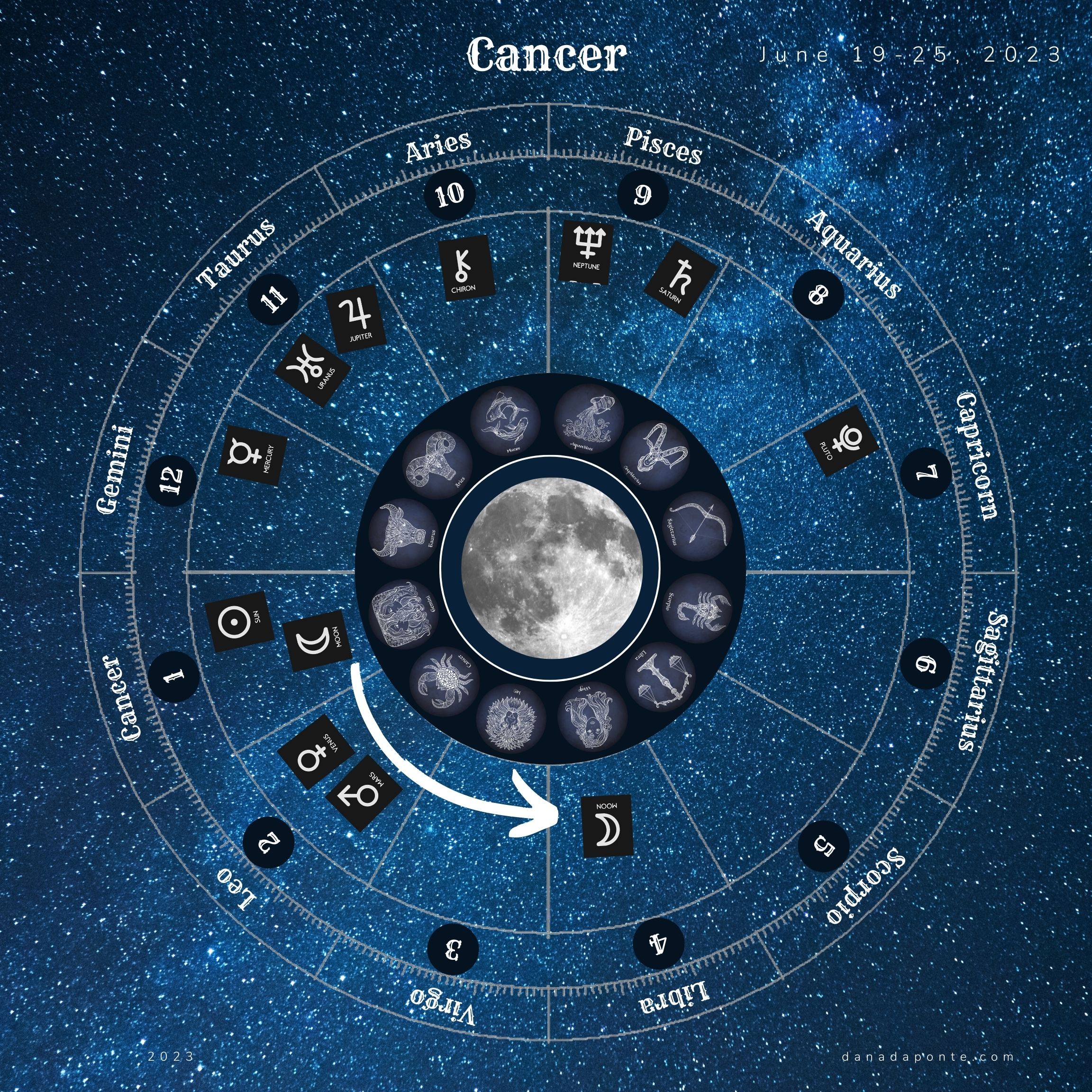 Today the moon is in the waxing crescent phase and it is the Summer Solstice which is also when the sun moves into the sign of Cancer.