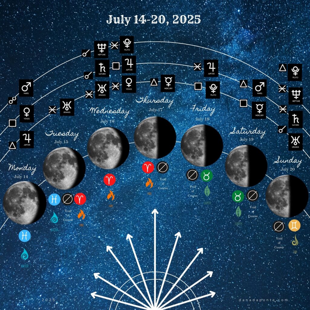 In this post, I share a summary of the moon for the week of July 14-20, 2025 as it moves through the zodiac and interacts with the planets and I show you how to work with its energy in your art journal to grow yourself or your business. I also talk about working with the magic of Leo energy in your art journal.