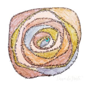 2. Draw or collage a doorway or threshold. This represents the in-between space you’re in. Around the doorway, add sacred symbols, animal or plant magic that reminds you of the magic of stillness.