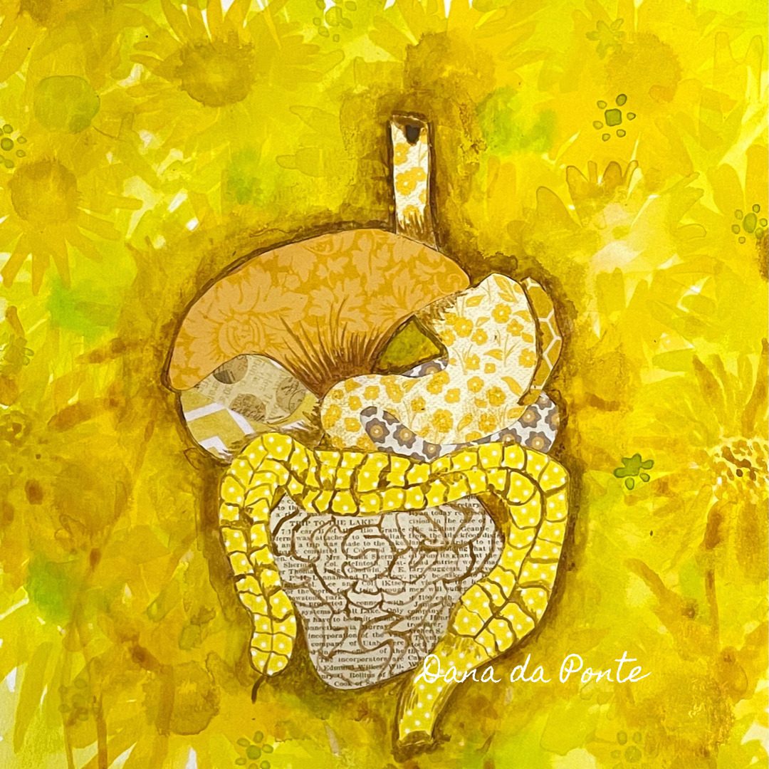 The color yellow is connected to the Solar Plexus chakra which is located between the navel and the base of the sternum. Imagine a bright yellow sun in the middle of your body. This chakra manages the digestive process and organs, influenced the nervous system and immune system. Think of this chakra as the place where you digest your emotional experiences and thoughts not just your food. It shows us how well or how poorly the mind, heart and body are doing in relationship with each other.