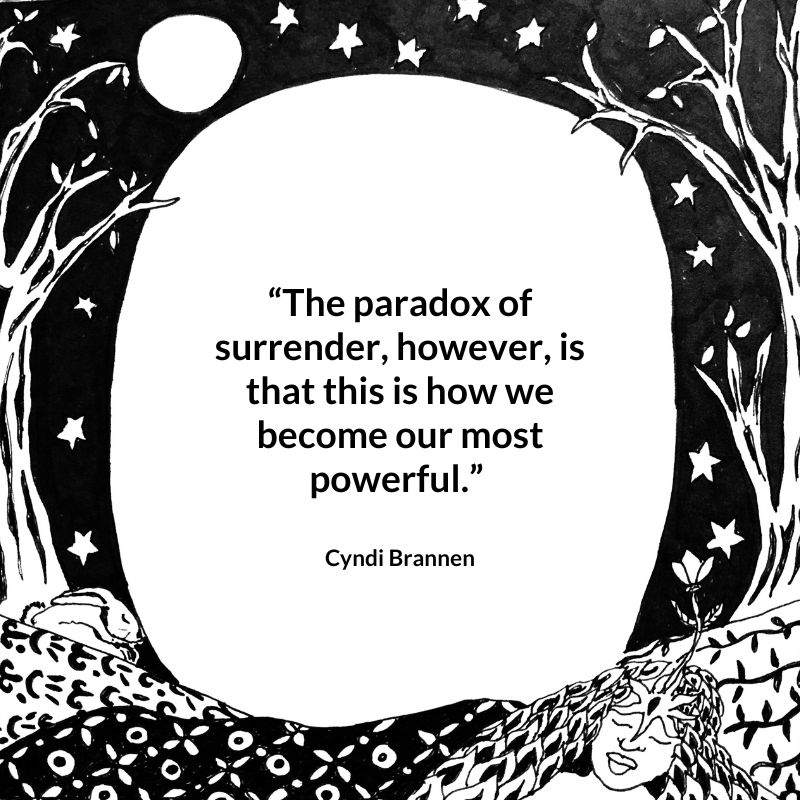 As Cyndi explains in her book, the darkness is the unconscious and the mystery. It’s where we greet our spirit allies. It’s where we purge our traumas and make space for new things to grow. It’s where we weave pieces of ourselves back together again and understand the depths of our soul. It’s where creation takes root. It’s what existed before time. It’s the womb of the Great Mother.