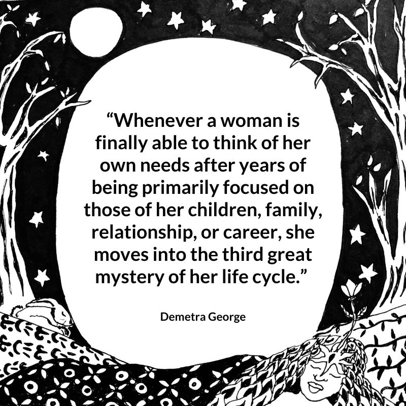 She also hypothesizes that perhaps the abolition and death of the Goddess in our culture is a natural part of her cycle and was the Goddess herself retreating into her own dark moon phase so that she could return in a new way – which Demetra suggests is what is happening now – her rebirth. I loved this way of looking at all the chaos, collapse and transformation we are currently seeing in the world.