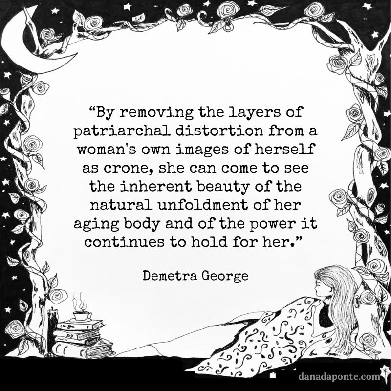 I get it. I get scared of the same things because I was raised in the same gross soup after all but I don’t agree with it and over my lifetime, I want to do the inner work to have a strong spine and a voice. Being a nice submissive woman who doesn’t speak up just isn’t my idea of a wise or healthy way to be but Demetra’s book was so enlightening in showing me exactly how we got here.
