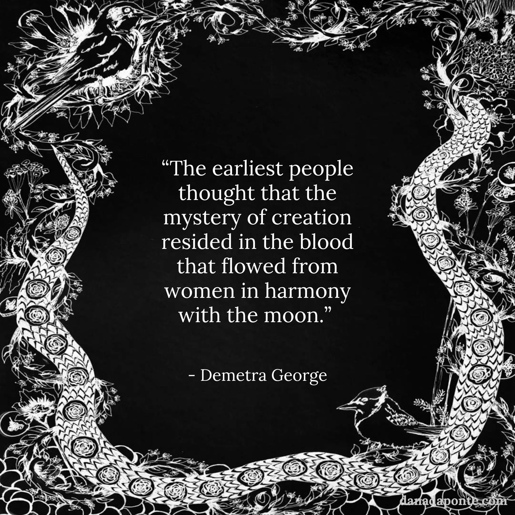 Personally, I think one of the most enjoyable ways to get a feel for a book is to savor some its more delicious or meaningful phrases so here’s a little collection of my favorite quotes from Demetra George’s book “Mysteries of the Dark Moon: The Healing Power of the Dark Goddess”.