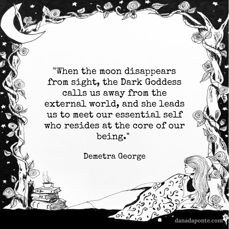 In the book, Demetra highlights specific dark moon times and suggests we learn to embrace them, do the inner work and see them as a time of transformation, rebirth and renewal.